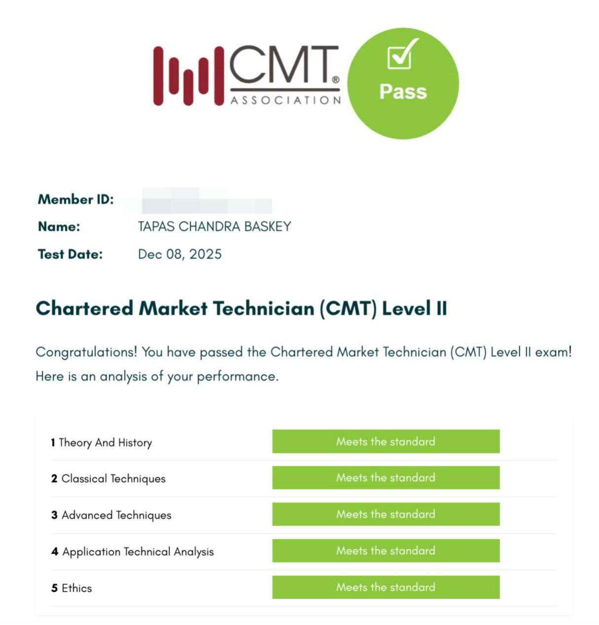 ✅ Cleared CMT Level I & Level II (Level-III Candidate)